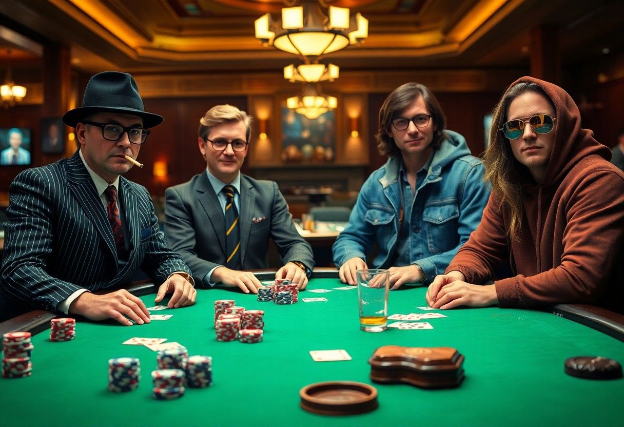 Razlikuju se po stilu i rezultatima: turnirski šampioni fokusirani na WSOP i velike serije, specijalisti za cash igre koji vladaju visokim ulozima, majstori blefa poznati po kontroli stola, mešani igrači koji dominiraju u H.O.R.S.E. i online fenomeni sa milionskim izplatama; primeri kao Phil Hellmuth (16 WSOP narukvica) i Stu Ungar (3 Main Event naslova) ilustruju različite puteve do legende.